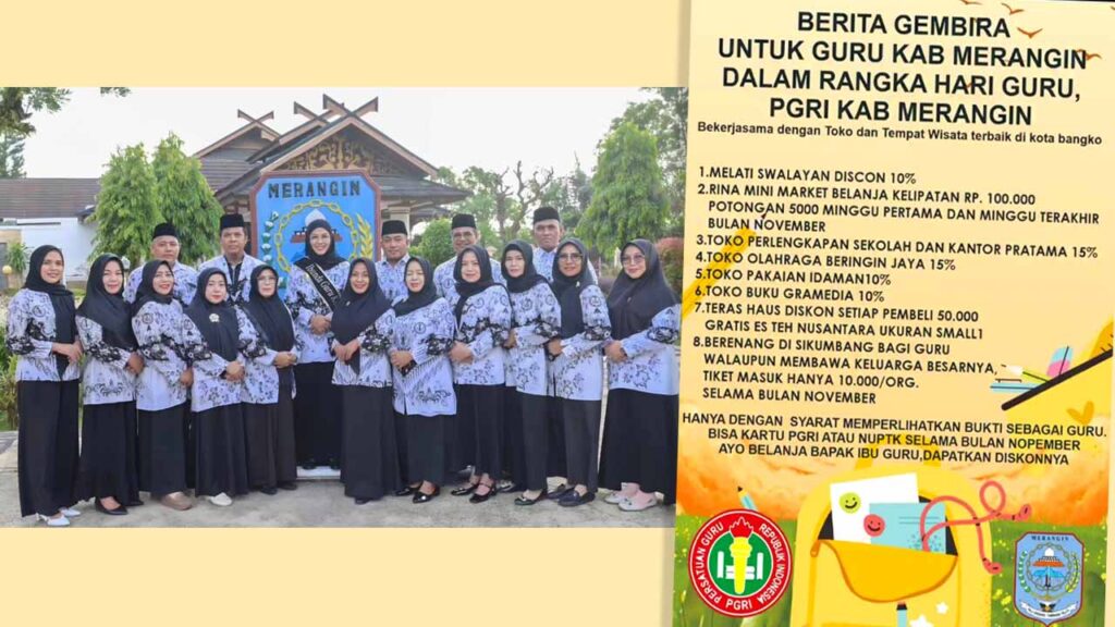 Merangin | Fokus Info News – Dalam rangka memperingati Hari Guru Nasional, Persatuan Guru Republik Indonesia (PGRI) Kabupaten Merangin bekerja sama dengan sejumlah toko dan tempat wisata di Kota Bangko memberikan beragam promo dan diskon khusus bagi para guru sepanjang bulan November.