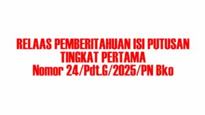 HUKUM NASIONAL PERDATA RELAAS PEMBERITAHUAN ISI PUTUSAN VESTEK KEPADA TERGUGAT NOMOR 12/Pdf/G/2025/PN Bko redaksi.fin Oktober 9, 2025 diBaca : 43 Keep Scrolling Tags: PN Bangko posbakum pn bangko relaas Continue Reading Previous: Pemdes Kungkai Salurkan BLT-DD Triwulan III 2025, Kades Riko Hartanto: “Semoga Bermanfaat dan Meringankan Beban Warga”Next: PGRI Merangin Sampaikan Selamat atas Pelantikan 1.375 PPPK, Harapkan Tenaga Guru Jadi Teladan di Dunia Pendidikan Related Stories RELAAS PEMBERITAHUAN ISI PUTUSAN TINGKAT PERTAMA Nomor 24/Pdt.G/2025/PN Bko ADVERTORIAL PERDATA RELAAS PEMBERITAHUAN ISI PUTUSAN TINGKAT PERTAMA Nomor 24/Pdt.G/2025/PN Bko Januari 14, 2026 ‘Kali Ke-Dua’, LBH Prioritas Keadilan Resmi Teken Kerja Sama Posbakum PN Bangko DAERAH HUKUM SEREMONIAL ‘Kali Ke-Dua’, LBH Prioritas Keadilan Resmi Teken Kerja Sama Posbakum PN Bangko Januari 7, 2026 Lolos Seleksi Posbakum PA Bangko 2026, IAI SMQ Bangko Diterpa Isu Dugaan Double Job Peserta DAERAH HUKUM NASIONAL PENDIDIKAN POLEMIK Lolos Seleksi Posbakum PA Bangko 2026, IAI SMQ Bangko Diterpa Isu Dugaan Double Job Peserta Januari 6, 2026